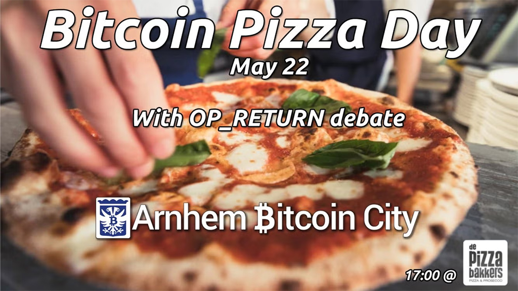 Join us for the Arnhem Bitcoin Pizza Day at De Pizzabakkers! Please RSVP as the hosts need to make a reservation at the restaurant and there is only limited space.