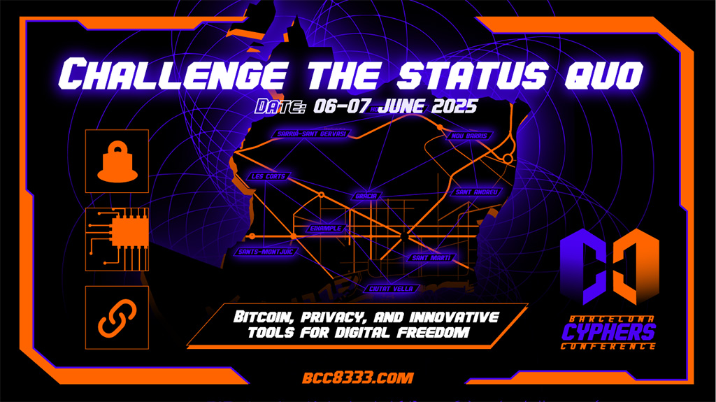 Welcome to BCC8333, the Barcelona Cyphers Conference 2025—an event unlike any other. Designed to bring together open-source developers, builders, and advocates for freedom, this gathering is all about practical solutions, collaborative thinking, and direct action.
