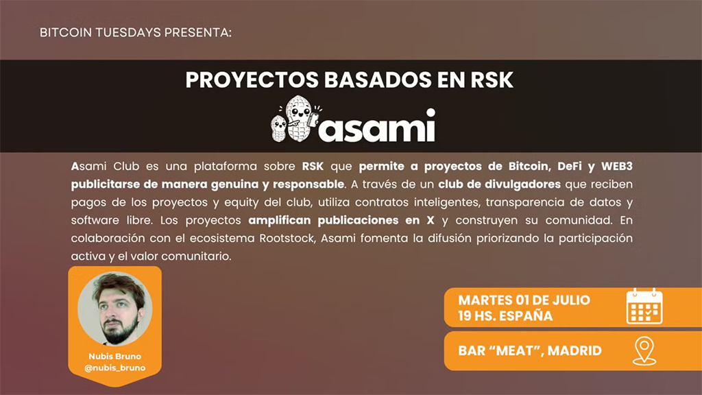 Bitcoin Tuesday Madrid #58 – Proyectos basado en RSK: Asami Club, con Nubis