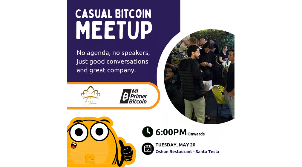 Ready to talk Bitcoin over some good vibes and great company? Join the Mi Primer Bitcoin Meetup for a laid-back evening at Oshun in Santa Tecla! Whether you’re a total newbie, a seasoned Bitcoiner, or just curious about what all the fuss is about, this is the perfect spot to hang out, swap stories, and make new friends.