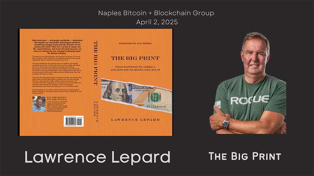 Join us for the Naples Bitcoin + Blockchain event with guest speaker Lawrence Lepard, the author of The Big Print. Bring your copy to get it signed.