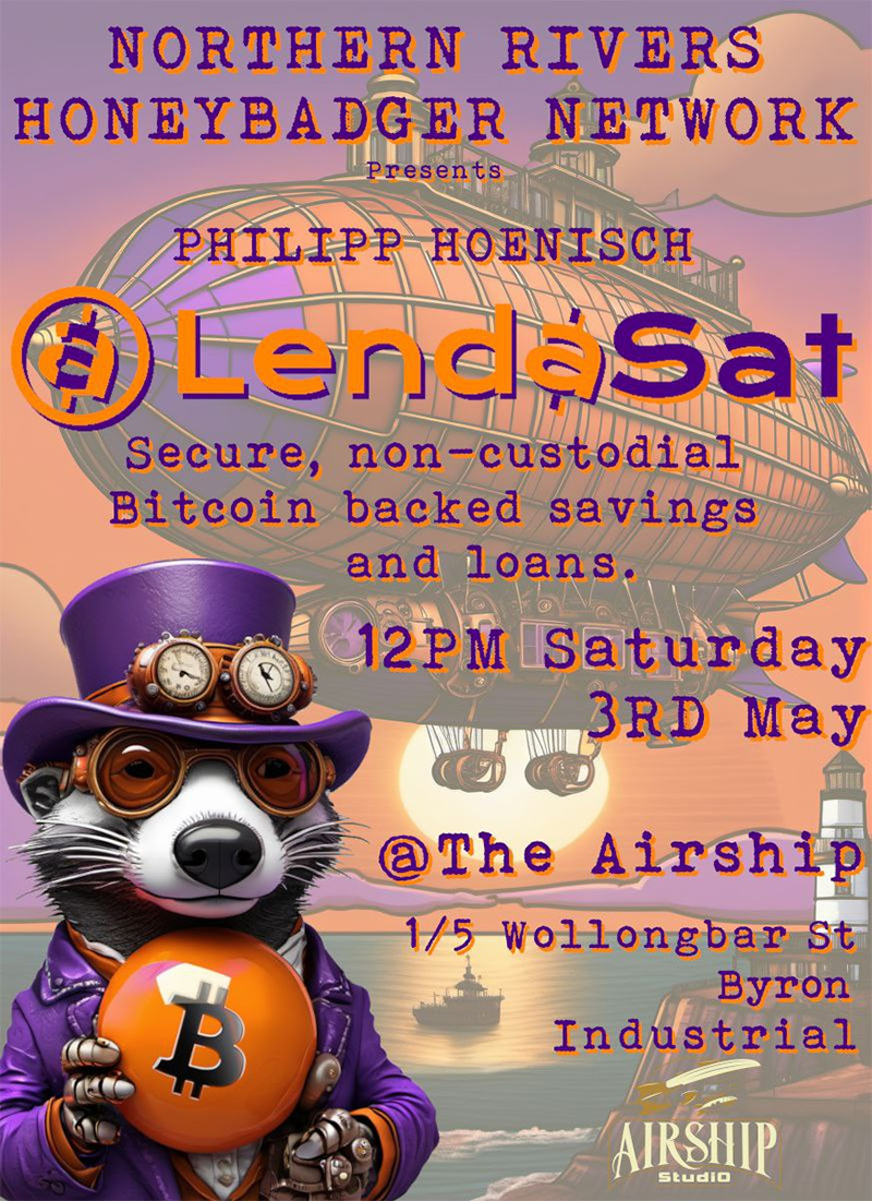 Join us on May 3rd from 2:00 PM at The Airship (1/5 Wollongbar St, Byron Bay, NSW) for the Northern Rivers Honeybadger Network Meetup.