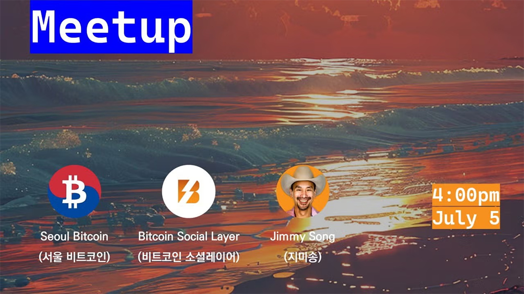 In this Seoul Bitcoin Meetup, there’ll be special Q&A session with Jimmy Song, a Bitcoin developer, educator, and entrepreneur based in Austin, TX known as an OG, sharing a wealth of insights. His notable books include Programming Bitcoin and The Little Bitcoin Book.