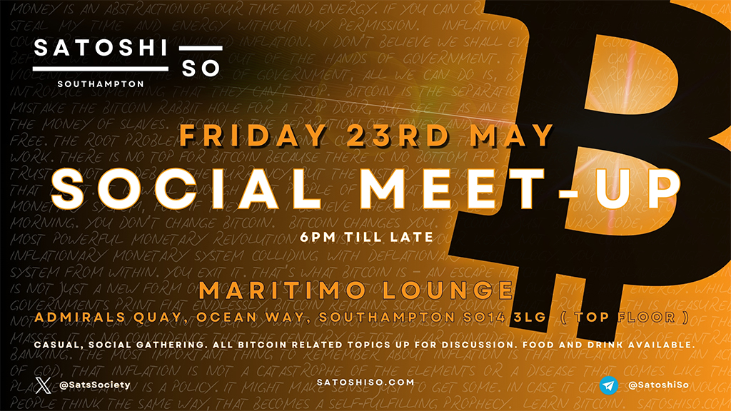 Connect with fellow Bitcoin enthusiasts at The Satoshi Society Meetup in Southampton! Whether you’re just starting your Bitcoin journey or you’re a seasoned Bitcoiner, this event offers a welcoming space to share insights, ask questions, and engage in lively conversations.